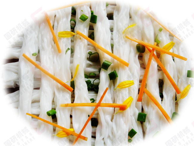 廣東拉腸粉具有白如雪、薄如紙、油光閃亮、香滑可口等特點(diǎn)。又因方便快捷,拿起即食的優(yōu)點(diǎn),廣受早餐時(shí)間匆忙的上班族喜愛。而傳統(tǒng)純靠蒸盤一張一張蒸片刮成型,生產(chǎn)效率低,勞動(dòng)強(qiáng)度大,無法量產(chǎn),從而錯(cuò)過銷售了高峰期的客流量。廣州國研機(jī)械正是看準(zhǔn)了此商機(jī),早在二十年前便已經(jīng)在河粉的基礎(chǔ)上增加了自動(dòng)的拉腸粉成型機(jī),讓商家除了可生產(chǎn)拉腸粉外,有多余的時(shí)間還可生產(chǎn)河粉,涼皮等產(chǎn)品,一機(jī)多用,讓銷售市場(chǎng)更多元化,獲得更多的利潤。