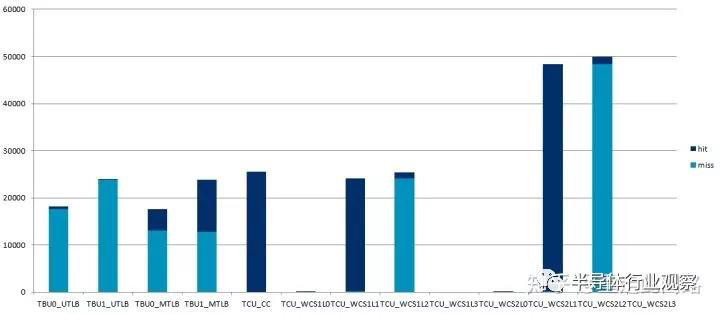這是啟用2階地址映射后的實(shí)測(cè)結(jié)果,其各項(xiàng)緩存大小均配置成較大,然后把兩個(gè)主設(shè)備連到接口,進(jìn)行地址較為隨機(jī)的訪問(wèn)??梢钥吹?,主設(shè)備的5萬(wàn)次訪問(wèn),在經(jīng)過(guò)SMMU后,產(chǎn)生了近5萬(wàn)次未命中。這意味著訪問(wèn)的平均延遲等于訪存延遲,150ns以上。另一方面,處理器開(kāi)了虛擬機(jī)后,它的隨機(jī)訪存效率,和未開(kāi)虛擬機(jī)比,卻能做到80%以上,這是為什么呢?答案很簡(jiǎn)單,處理器內(nèi)部的MMU,會(huì)把中間頁(yè)表的物理地址繼續(xù)發(fā)到二級(jí)或者三級(jí)緩存,利用緩存來(lái)減少平均延遲。而SMMU就沒(méi)有這么幸運(yùn),在Arm先前的手機(jī)處理器參考設(shè)計(jì)中,并沒(méi)有系統(tǒng)緩存。這種情況下,即使對(duì)于延遲不太敏感的主設(shè)備,比如圖形處理器,打開(kāi)虛擬化也會(huì)造成性能損失,可能高達(dá)9%,這不是一個(gè)小數(shù)目。