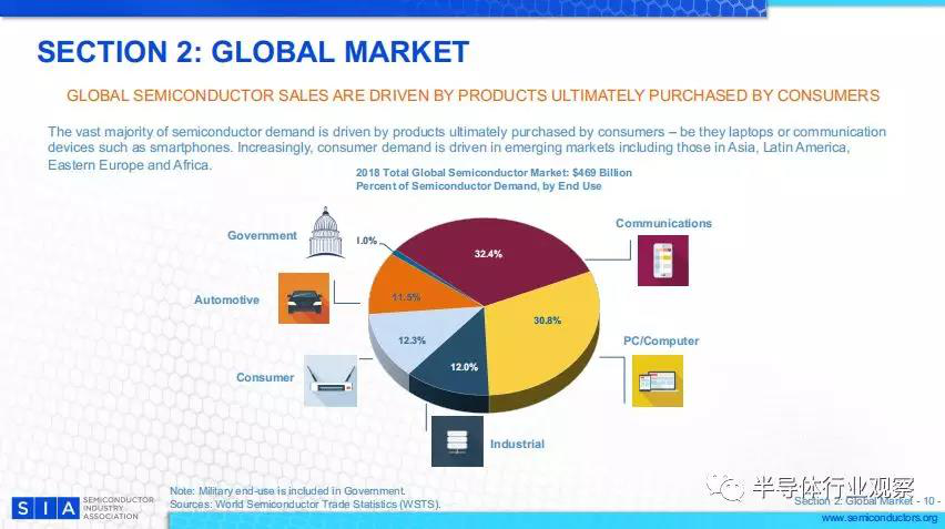 絕大多數(shù)半導(dǎo)體需求是由消費(fèi)者最終購買的產(chǎn)品驅(qū)動的——無論是筆記本電腦還是智能手機(jī)等通信設(shè)備。消費(fèi)者需求越來越多地受到新興市場的推動,這些地區(qū)包括亞洲,拉丁美洲,東歐和非洲。