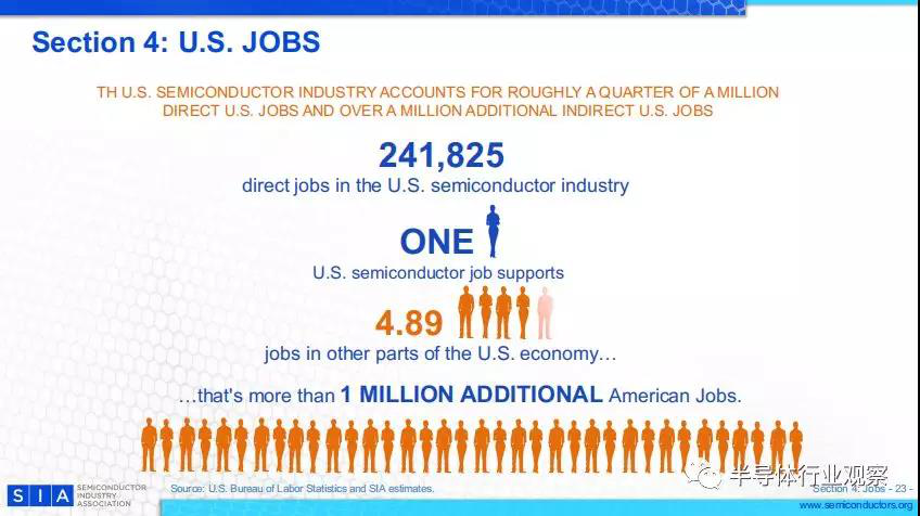 數(shù)據(jù)顯示,美國本土從事半導(dǎo)體產(chǎn)業(yè)的人有241825人。而半導(dǎo)體間接相關(guān)的美國就業(yè)崗位超過100萬。