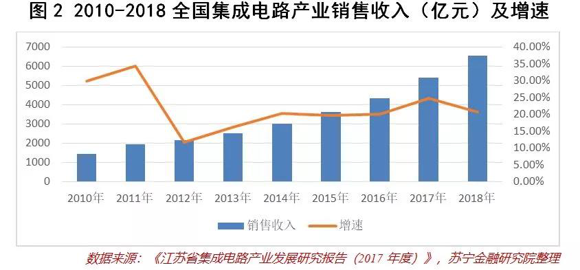進(jìn)入21世紀(jì)的19年來(lái),中國(guó)IC產(chǎn)業(yè)快速發(fā)展,復(fù)合年均增速達(dá)到25%,遠(yuǎn)高于全球7.6%的增長(zhǎng)水平(參見(jiàn)圖2)。即便是在2018年,中國(guó)集成電路產(chǎn)業(yè)銷售收入仍高達(dá)6532億元,增長(zhǎng)20.7%。