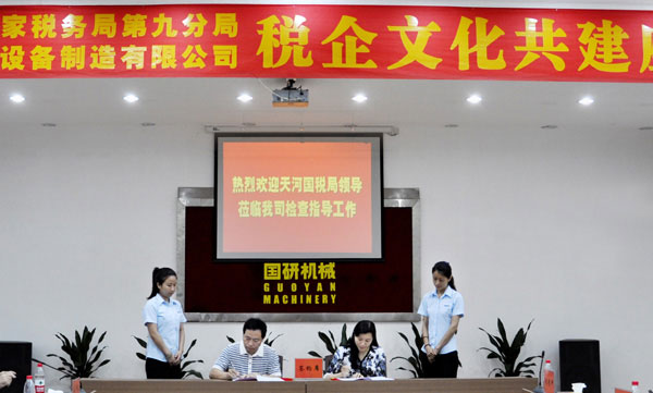 天河國稅第九分局朱慧嚴(yán)局長和公司總經(jīng)理王聲位簽署“稅企文化共建協(xié)議”