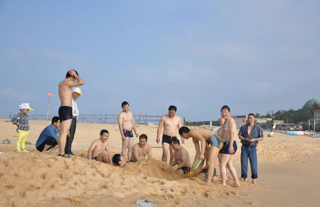 雖然到了深秋,海風習習,海水也有一絲絲涼意,參與活動的國研機械總部50多名員工紛紛下海暢游,好不愜意。不少參與活動的員工家屬也按捺不住活動開來。大家邊游泳,邊踏浪,也有的在沙灘上撿貝殼,孩子們拿著鏟子挖沙,一個個玩得不亦樂乎。
