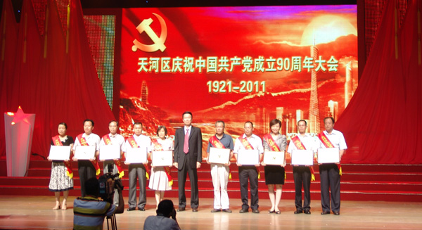 6月29日下午,廣州市天河區(qū)慶祝中國共產(chǎn)黨成立90周年暨先進基層黨組織、優(yōu)秀共產(chǎn)黨員、優(yōu)秀黨務(wù)工作者表彰大會在天河區(qū)政府機關(guān)大會場內(nèi)隆重舉行。區(qū)委書記、區(qū)人大主任劉悅倫出席會議并發(fā)表講話,向區(qū)全體黨員和與會代表致以誠摯的問候,并向受到表彰的先進基層黨組織、優(yōu)秀共產(chǎn)黨員和優(yōu)秀黨務(wù)工作者表示熱烈祝賀。